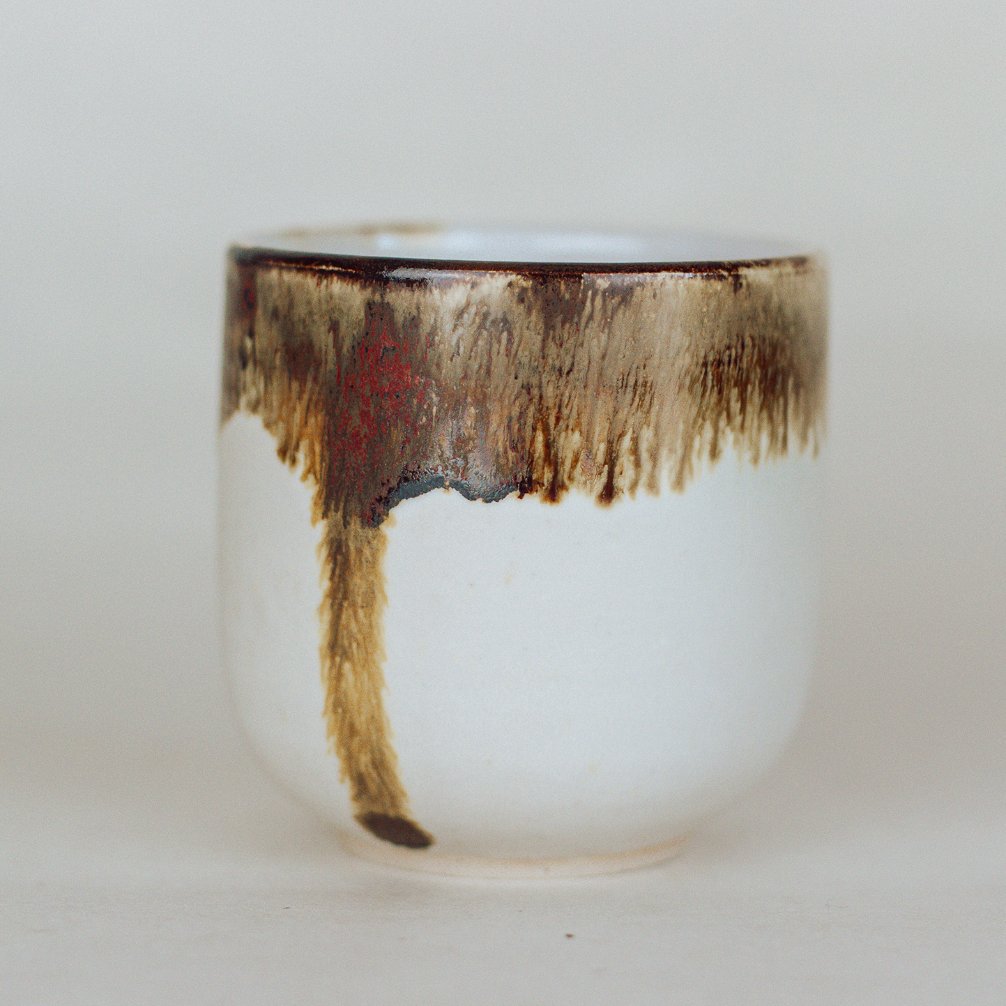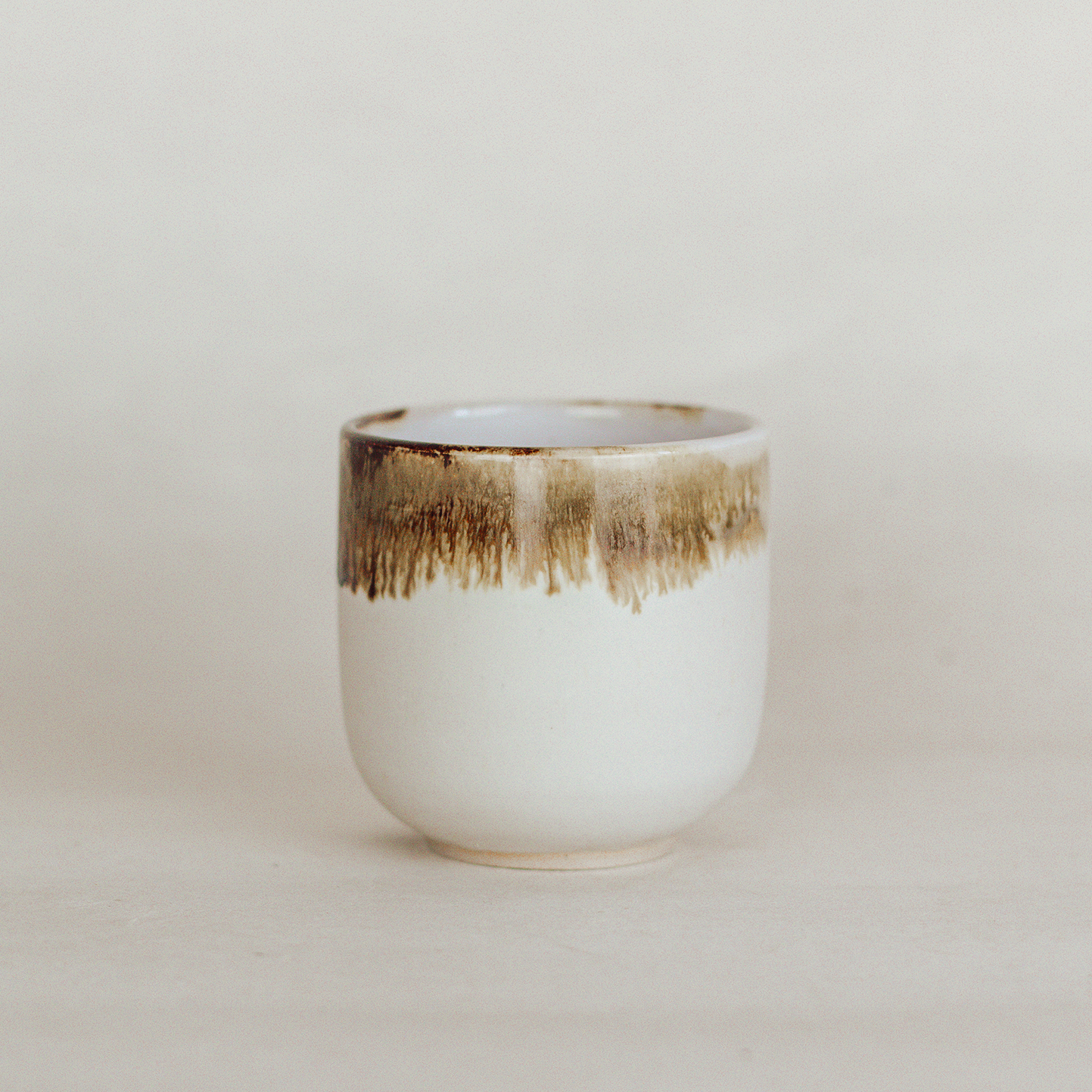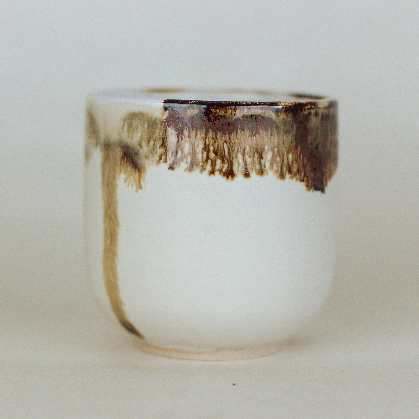 The Iron Drip Tumbler pairs a soft matte white glaze with a striking drippy iron oxide rim, giving it an effortlessly modern, handmade look. The clear glossy interior and rim ensure every sip is smooth and comfortable.